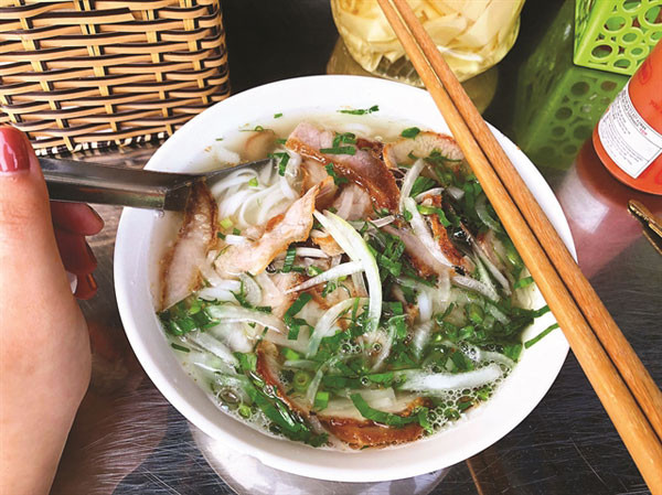 Phở xíu, or rice noodles with fried pork, should not be missed when visiting this small city.