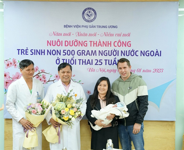 The National Hospital of Obstetrics and Gynecology on January 3 announced that its doctors had successfully nurtured a 500-gram premature baby weighing only 500 grams after 25 weeks of pregnancy.