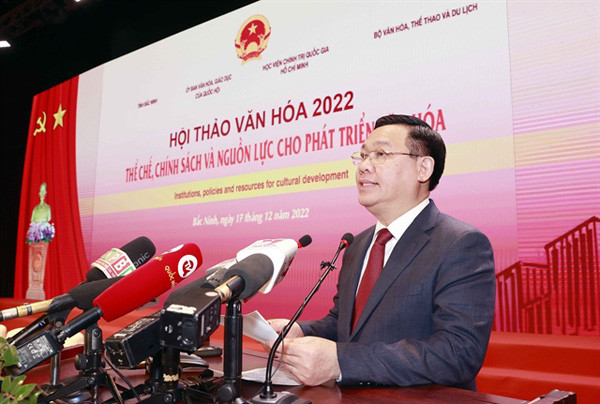 According to National Assembly Chairman Vuong Dinh Hue, the workshop agreed on nine major and important policy groups that need to be researched and institutionalised to remove bottlenecks and create breakthroughs for cultural development.