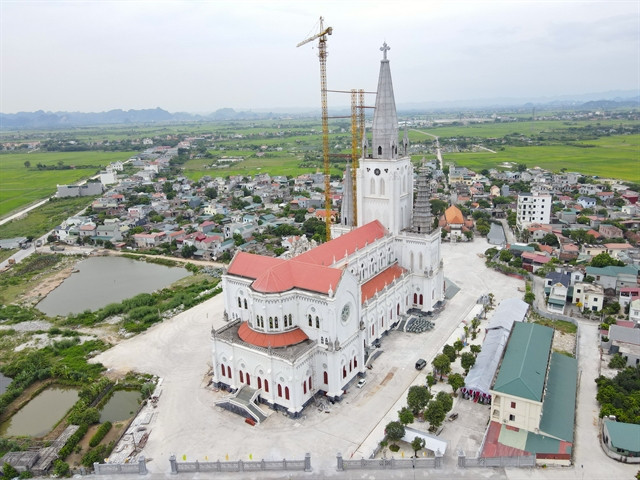 | RECORD BREAKER: The Lãng Vân Cathedral viewed from above. It is expected to be recognised as the largest cathedral in Việt Nam once finished. Photo daidoanket.vn |
