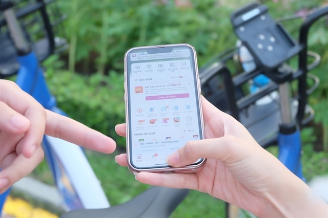 | Payment transaction via e-wallet for bike rental service in Đà Nẵng City. Innovation, digital transformation and green transition are vital trends. VNA/VNS Photo Văn Dũng |