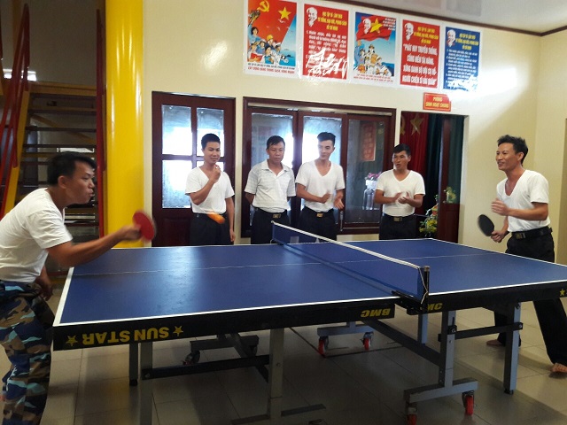Soldiers play table tennis after fulfilling their duties. (Photo: DK1 Battalion)