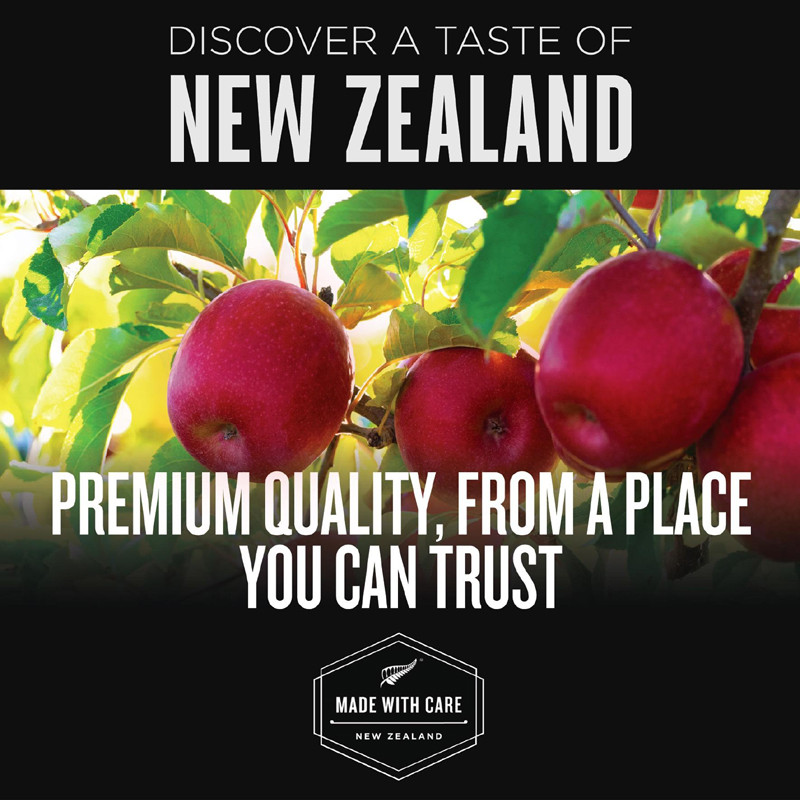 ● Premium quality: As an island nation with stringent biosecurity controls, New Zealand’s orchards and farms are a top source for spray-free produce. In 2016, a New Zealand company designed a packing system that packs apples at twice the speed of a human (120 apples per minute), ensuring the produce is fresh and in the best condition possible when it reaches the consumer.