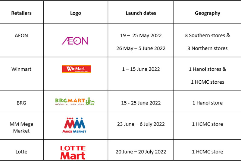 The above attributes are particularly well-aligned with the selected five retailers: AEON being highly focused on premium quality of its products, Winmart sharing an aspiration to bring tasty and safe foods to its customers, BRG sharing the nutritional value of each of its product selections and Lotte ensuring tasty and delicious products to its consumers.