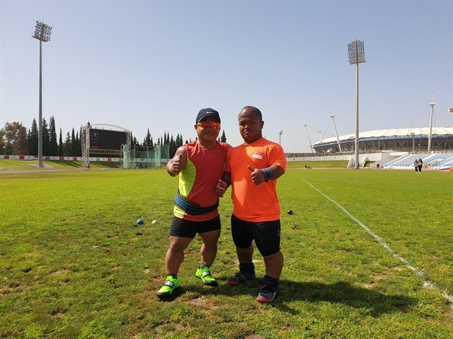 Trần Văn Nguyên (left) and an athlete pose for a photo after they competed in the World Para Athletics Grand Prix in Rades Stadium in Tunisia. Photo courtesy of Trần Văn Nguyên |