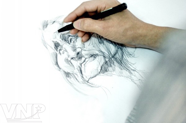 ![]() Drawing a cartoon with pencil. ![]() Painter Nguyen Huu Khoa is well-known for his pennames, Com and Khoai. ![]() A portrait of musician Thanh Tung. ![]() People’s artist Dang Thai Son. ![]() Musician Van Cao. ![]() Famous painter Bui Xuan Phai. ![]() Musician Tran Tien. ![]() Film actor Chanh Tin. ![]() Film director Le Hoang. |