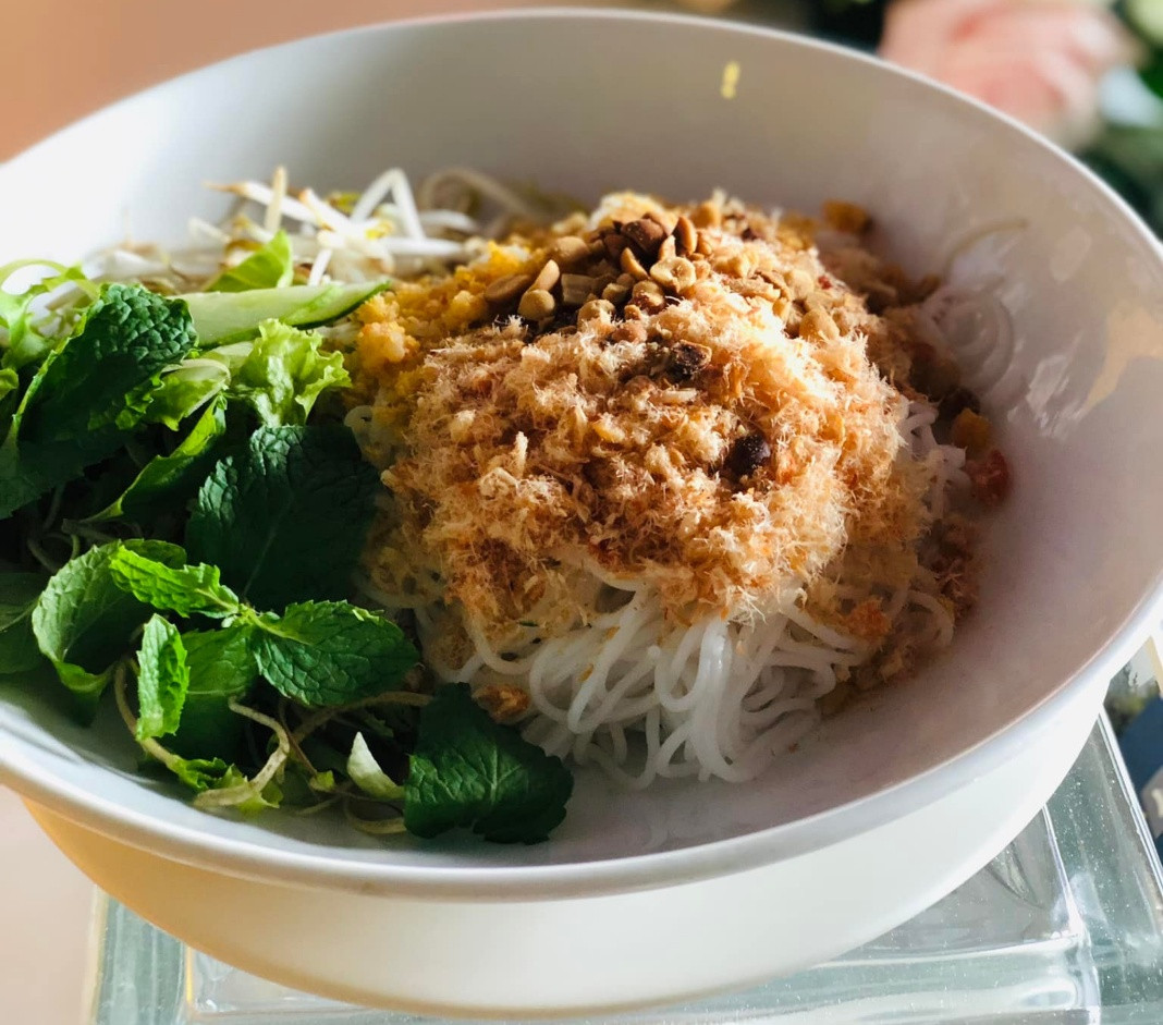 The processing of the dish is very simple, yet the dish is attractive thanks to the harmony of colors and flavors. The main ingredients of the dish include fresh rice noodles, papaya salad, dried shrimp paste, herbs and a unique dipping sauce made from coconut milk, fish sauce and fish broth.