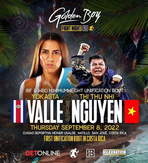Valle is set to put everything on the line when she faces undefeated world champion Nhi. The fight will be a 10-round world championship fight in Cuidad Deportiva Heiner Ugalde, Hatillo, San José.