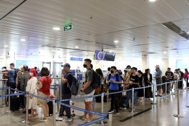 Passengers queue up to complete procedures at the Tân Sơn Nhất International Airport in HCM City. — VNA/VNS Photo Tiến Lực