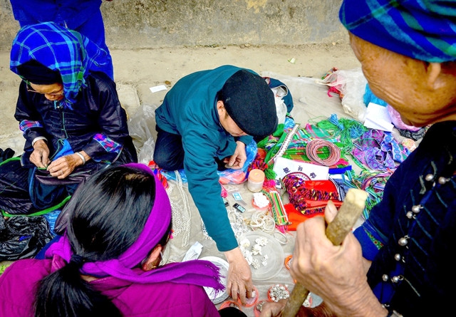 | Ethnic women are trading silver products at the district market. VNA/VNS Photo Nam Thái |