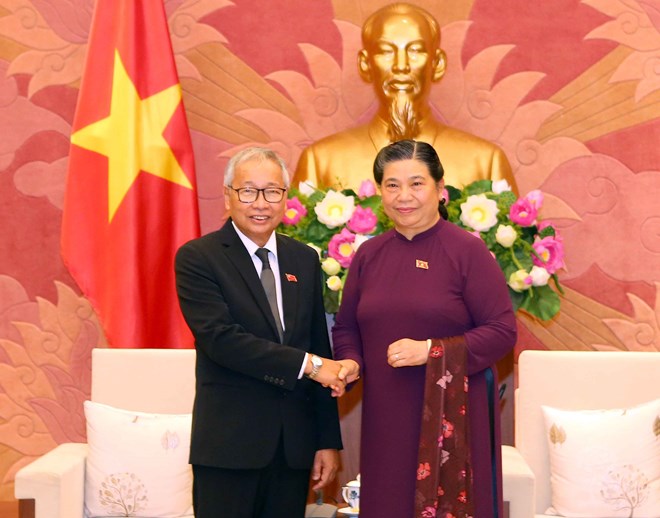 CPV Politburo member and Vice Chairwoman of theVietnamese National Assembly Tong Thi Phong received the delegation in Hanoi onJuly 3.