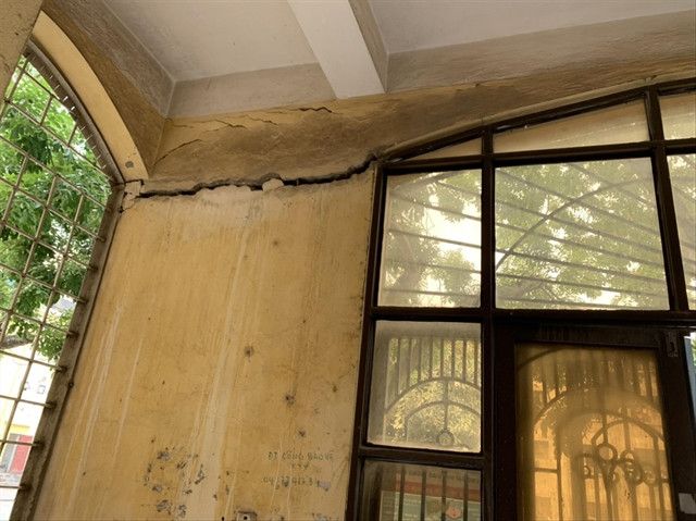 | A cracked wall in a dormitory of Hà Nội University of Transport in Hà Nội. — Photo tienphong.vn |