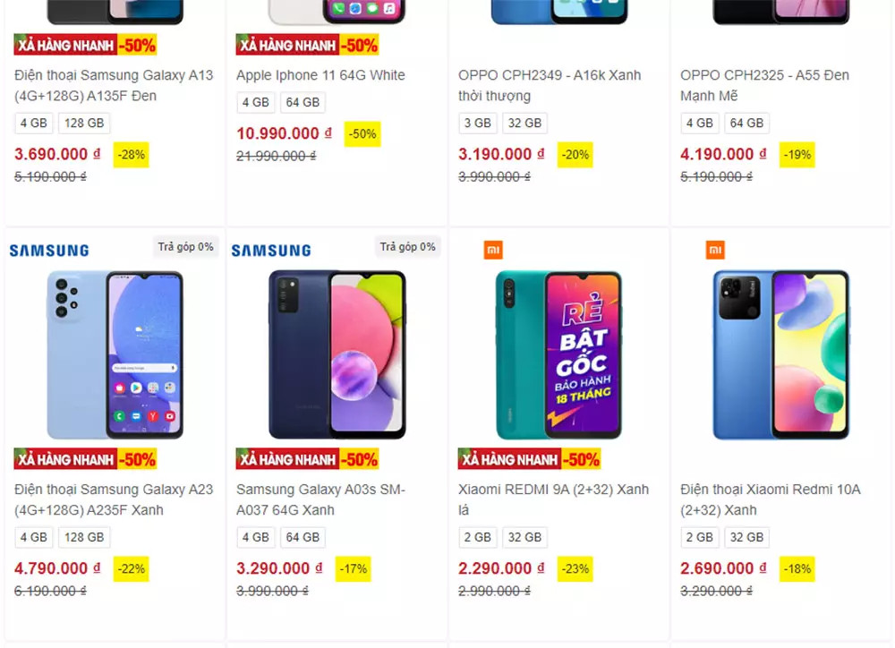 Other brands such as Samsung, Oppo, Vivo and Xiaomoi have also decreased in price. Samsung Galaxy A13 price has dropped from VND5.19 million to VND3.69 million (28 percent), while Samsung Galaxy A23 from VND6.19 million to VND4.79 million and Samsung Galaxy S22 versions have fallen by VND6-7 million.