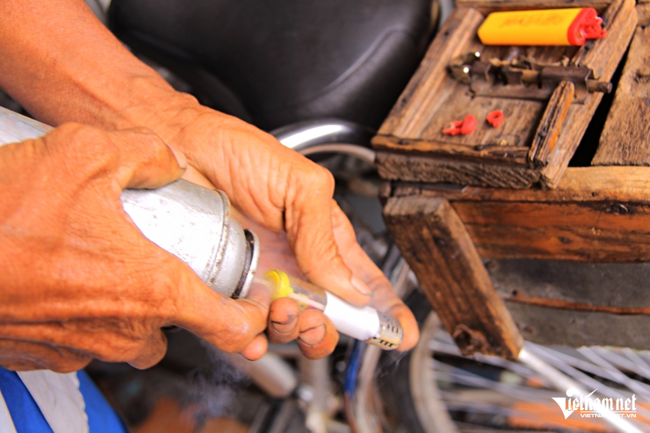 “At the time, refilling gas lighters became a booming business,” Hung recalls. “I’ve been doing this for over 30 years. In my younger days, I patched bicycle tires, but it was unstable work. Customers often delayed payments. Then some friends suggested I switch to gas refilling for lighters. I took their advice because I could earn cash right away, enough to buy rice.”