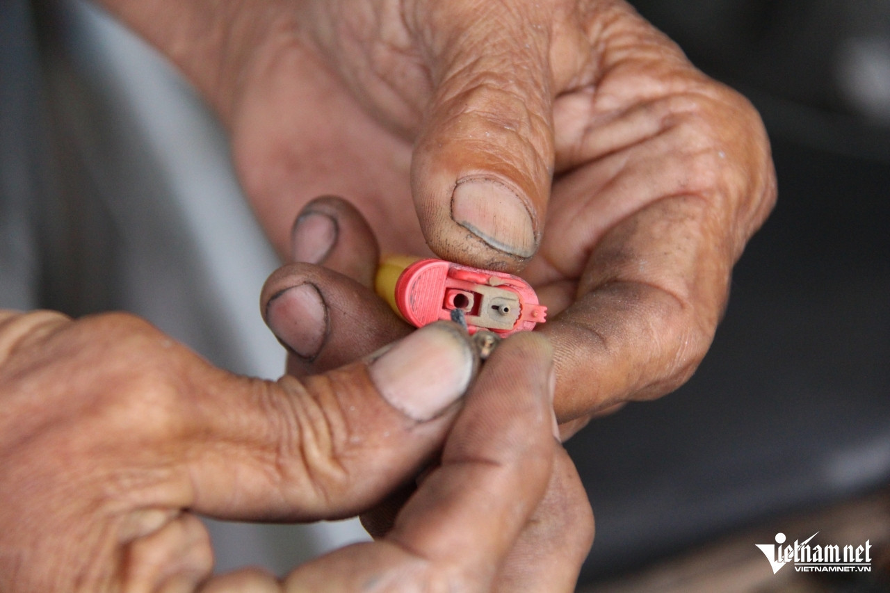 In addition to refilling gas, Mr. Hung replaces flints when needed. Photo: Ha Nguyen