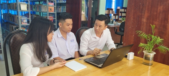 | Nguyễn Văn Hải (right), a teacher of chemistry, is one of the first teachers at Nguyễn Du High School registering to donate his organs and body after death. — VNA/VNS Photo Hoàng Nhị |
