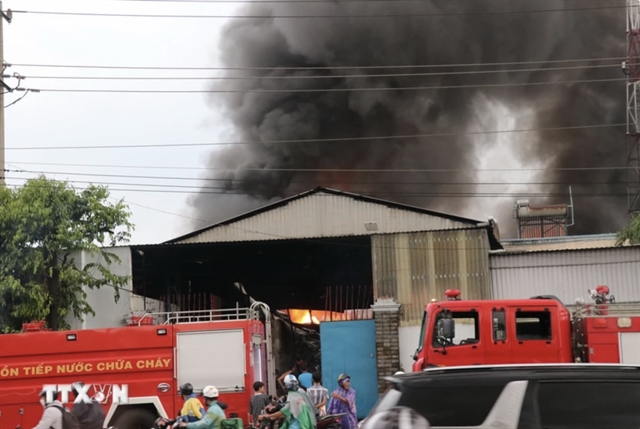 | A fire at a scrap facility in Bình Dương Province on August 22. VNA/VNS Photo |
