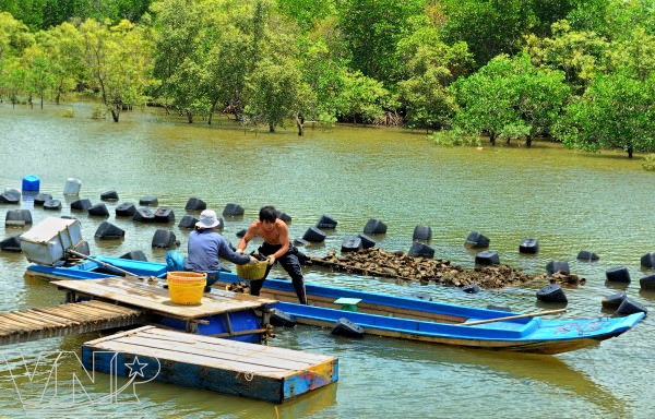 According to experienced farmers, the rivers in Can Gio are suitable habitats for oysters because of a high salinity and regular ebb and flow. Oysters grow quickly with three oysters weighing about 1kg. Due to the high quality, oysters raised in the area are sold at a high price and are much sought after by customers.