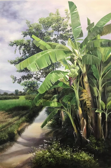 | SCENIC: Phan Mơ's paintings are inspired by the peaceful and picturesque sceneries of the countryside where she lives. Photo courtesy of the artist |