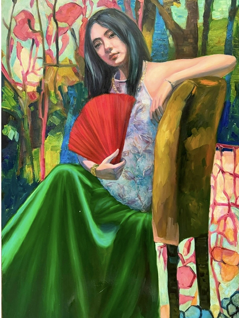 True to the exhibition’s theme, Hoang Vo captures young women in the bloom of springtime beauty, rendered in a realistic yet intimate style. Each subject is portrayed with her own distinct personality and emotional presence.