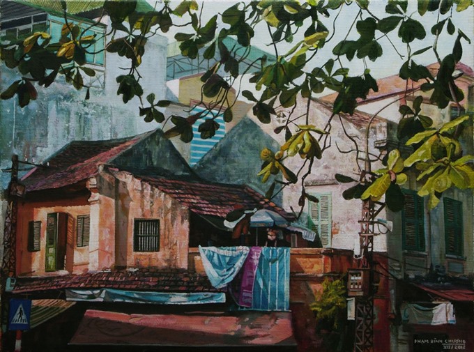 The typical motifs found in Phạm Bình Chương’s oil-on-canvas paintings may stir memories of Hà Nội in the early 20th century for older people, but for youngsters, it is an unfamiliar perspective of very familiar street corners that they pass every day.