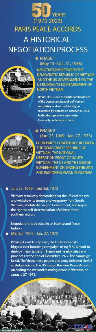 The Paris Peace Conference (1968 – 1973) has forever gone down in the history of the Vietnamese nation in general and the Vietnamese revolutionary diplomacy of the Ho Chi Minh era in particular as a hallmark that never fades. Celebrating the 50th anniversary of the signing of the Paris Peace Agreement (January 27), Vietnam is more deeply aware of the significance of this special historical document. Many lessons have been learned from the historical negotiations, in which the lesson on upholding the spirit of independence and international solidarity still holds profound theoretical and practical values.