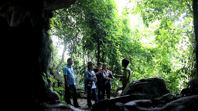 | A Cúc Phương National Park ranger introduces to visitors about Ancient Cave - a residence and burial place of prehistoric people 7,500 years ago. VNS Photo Đoàn Tùng. |