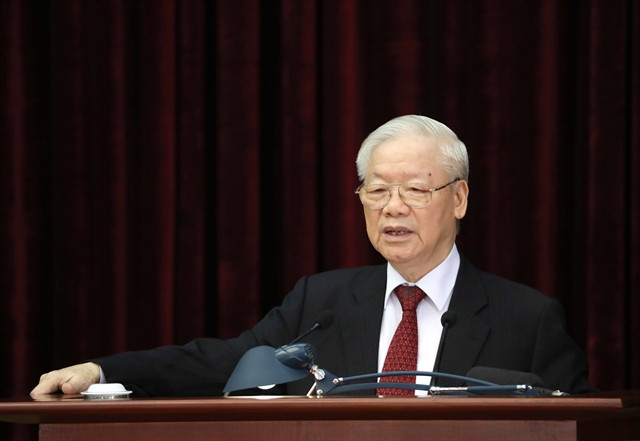 | Party General Secretary Nguyễn Phú Trọng addresses the closing ceremony of the 8th plenum of the 13th Party Central Committee on Sunday in Hà Nội. — VNA/VNS Photo Phương Hoa |