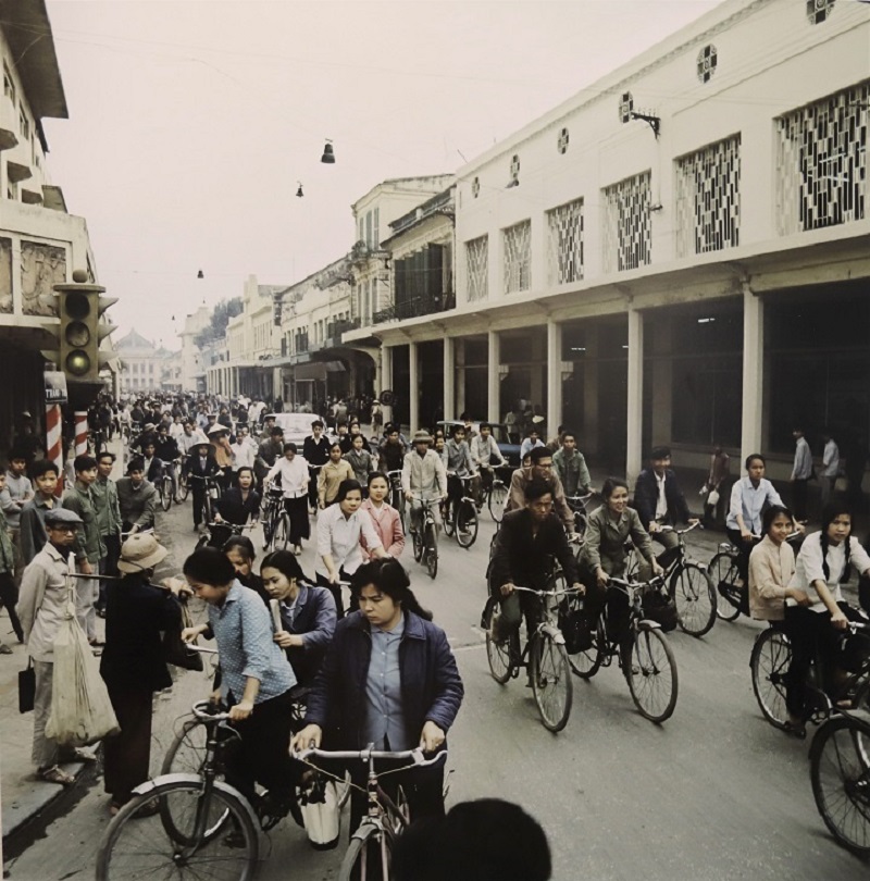 A peaceful and idyllic Hanoi with pictures of children playing beside the tram railway in Hang Dao street and long lines of people cycling on the street returned in the photo collection entitled “Hanoi 1967 - 1975" by German photographer - Thomas Billhardt (born 1937).