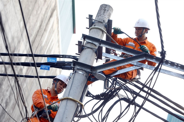 | Workers from EVNHANOI check power cables. — VNA/VNS Photo Huy Hùng |