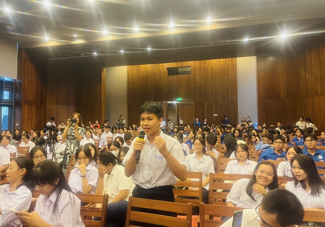 | A junior secondary student raises his opinion about waste reduction, reuse and recycle in a competition about the issue in Ghềnh Ráng Ward, Quy Nhơn City. — VNS Photo Thu Trang |