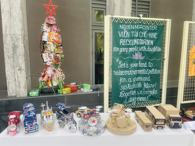 | Decorations made from waste by people with disabilities displayed in a recycle festival in Quy Nhơn City. — VNS Photo Thu Trang |