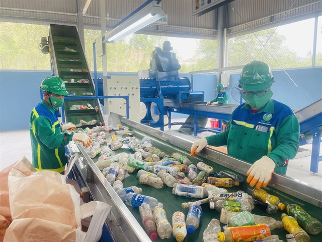 | Workers on duty to sort out plastic waste at a chain in the Material Recovery Facility. — VNS Photo Thu Trang |