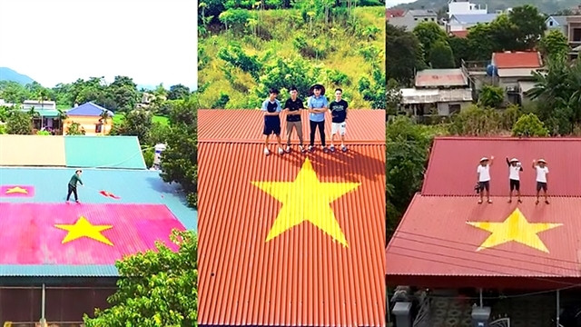A group of three young men from Phú Yên Province completed the flag on a 50m2 roof in nearly a day.
