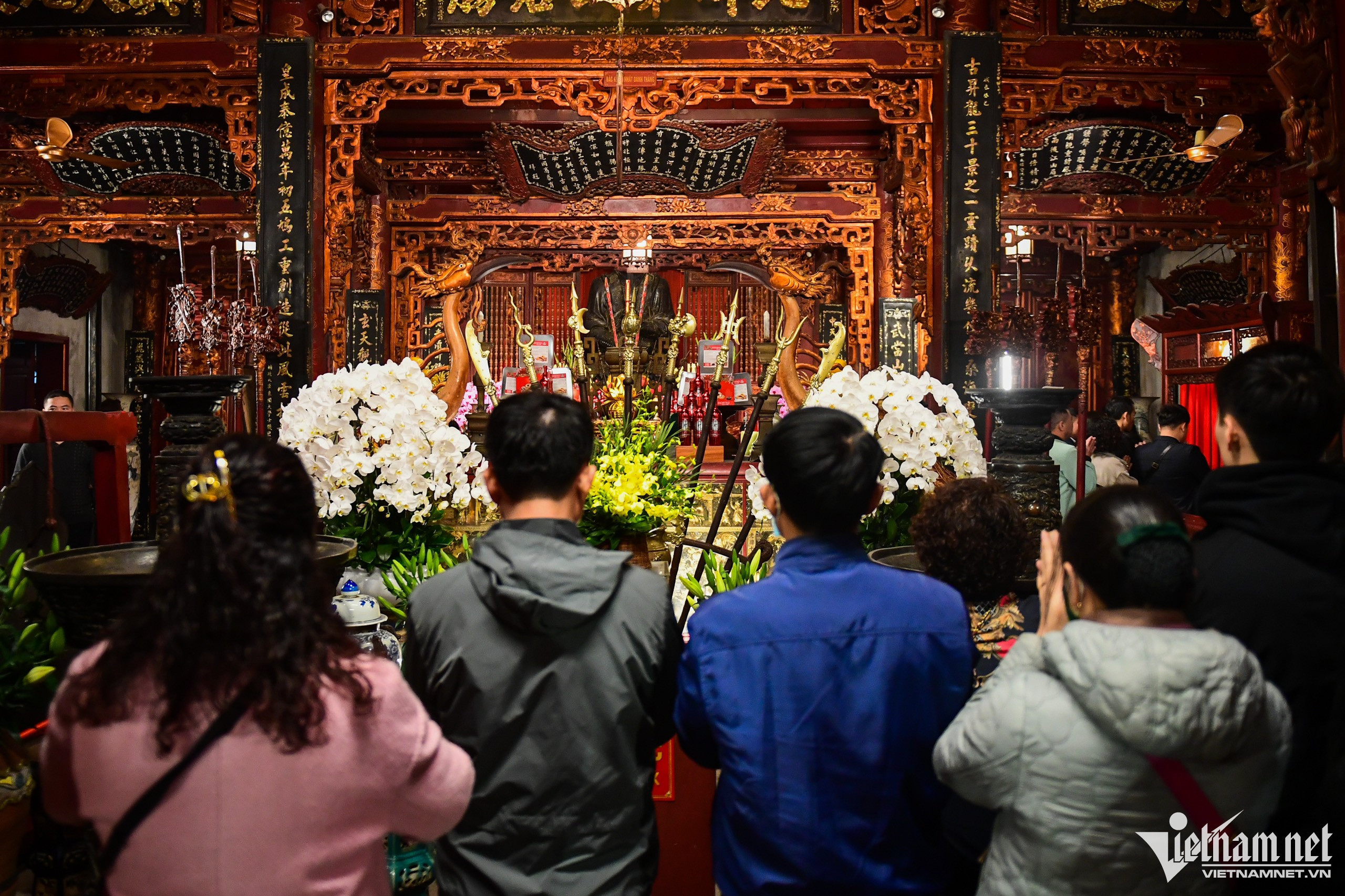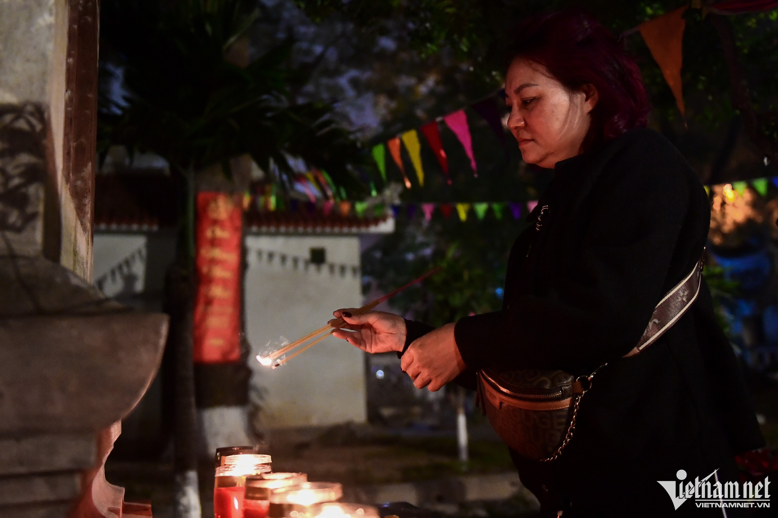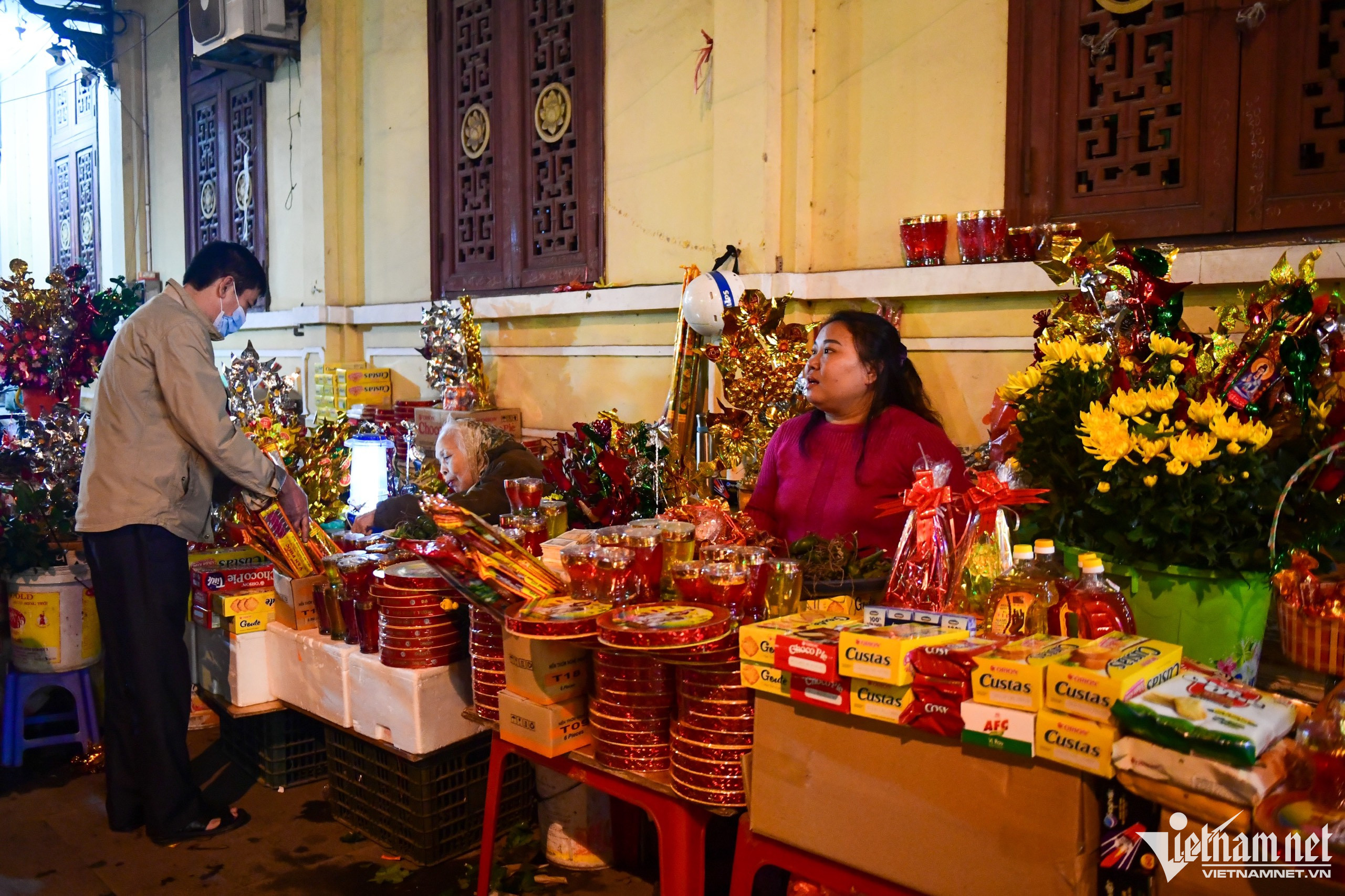 Vietnamese people typically go on a pilgrimage at the beginning of each Lunar New Year in order to pray for safety, health, good luck, prosperity, and happiness during the year ahead. When the clock strikes midnight on New Year’s Eve, many people begin their pilgrimage to nearby pagodas in order to pray for health and luck for both themselves and their loved ones. Photo: At Quan Su PagodaOutside the temple door, stalls sell all kinds of worshipping items.Many citizens sincerely believe that all of their wishes made on New Year’s Eve will come true.The young couple Minh Duc and Minh Ngoc have always kept the habit of going to pagoda after New Year's Eve for more than 20 years. At Quan Thanh Temple.Many people go to a pagoda to say goodbye to the old year and welcome in the new-year.Vietnamese people believe that the act of going to a pagoda is not just about praying for good things in the coming year, but also serves to reflect on what they have done in the past and leave all hardship behind.Buying salt is a traditional custom that Vietnamese people have observed for centuries. It’s believed that salt is capable of warding off evil spirits and bringing good luck for the family over the course of the coming year.