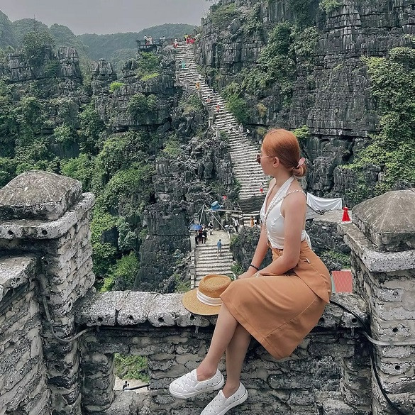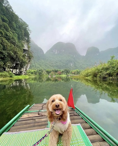 Many young people often visit Mua Cave - Ninh Binh to enjoy the scenery and take pictures.Although located next to the most famous scenic spot in Ninh Binh, Trang An, Mua Cave is a go-to destination for domestic and foreign tourists.Pets are also brought here for photos. Recently, photos of the dog Miu among the landscapes of the ancient capital of Ninh Binh has amused many people. One dog is the “protagonist” of the photos throughout famous places such as Hang Mua, Trang An, Bai Dinh pagoda, with its own natural and cute poses in each place. In particular, the lovely dog has a series of photos at Hang Mua."My dog's name is Miu. During the public holiday of Reunification Day, I went to Ninh Binh for 2 days and 1 night and took Miu with me. Miu and I set foot to Mua Cave, sat on Trang An boat, then went to Hoa Lu ancient capital. Miu seemed to like it a lot as she was cheerful and obedient for me to take pictures," shared Nguyen Huy Tuan about his series of photos that are taking the internet by storm.The owner says he looks forward to more meaningful trips with his pet.