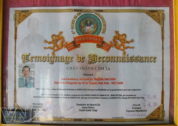 At the International Qi Gong Tournament 2007 held in Italy, Vinh was highly praised by the foreign audience and awarded an honour certificate "Famous Grand Martial Arts Instructor Truong Van Vinh" by the Organizing Board.