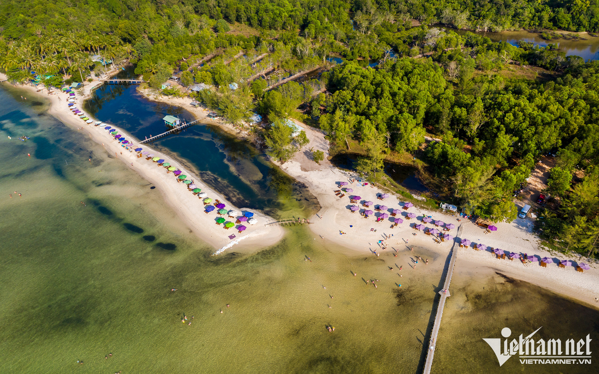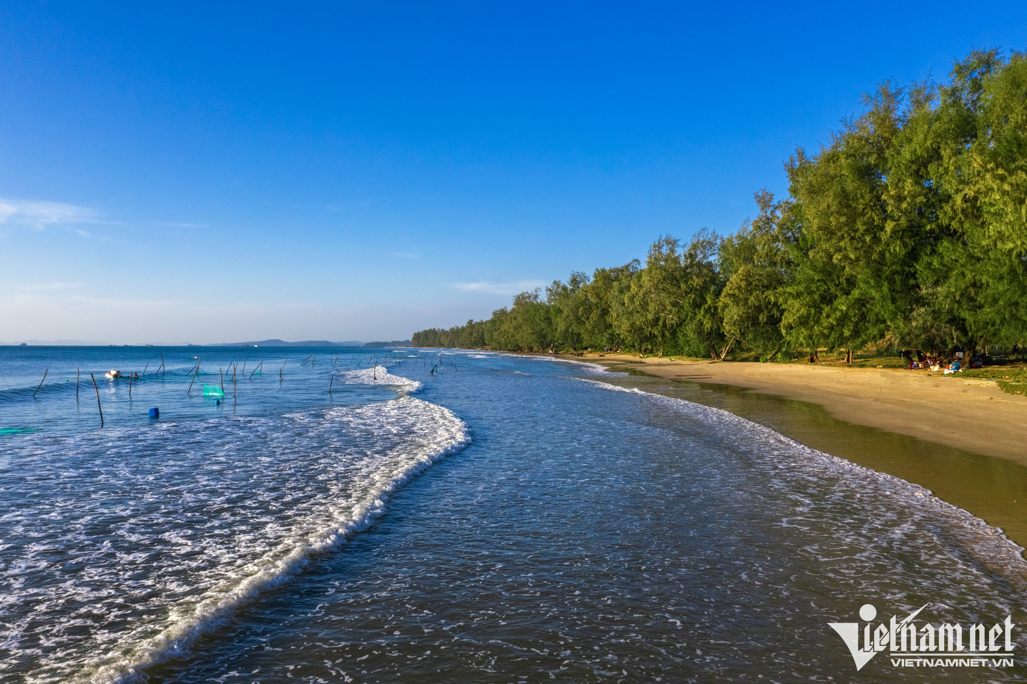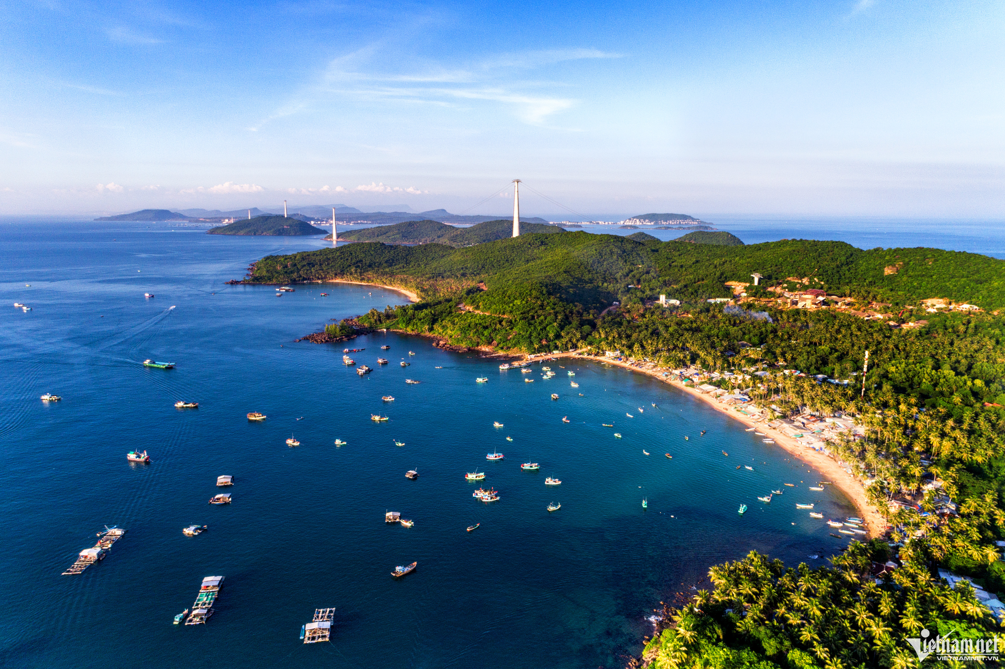 Coming to An Thoi, tourists often visit Hon Thom island, one of the most beautiful places in Phu Quoc, where there is a clear blue beach, stretching as far as the eye can see. The most ideal time to come here is the dry season, when the weather is completely dry, the average temperature is about 26-30 degrees Celsius, suitable for swimming, diving, fishing and exploring activities. Photo: Quang Ngoc.