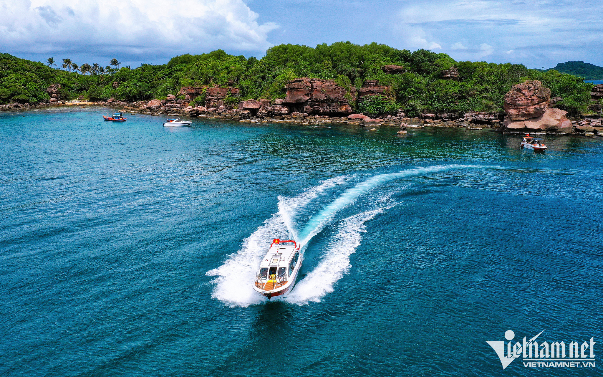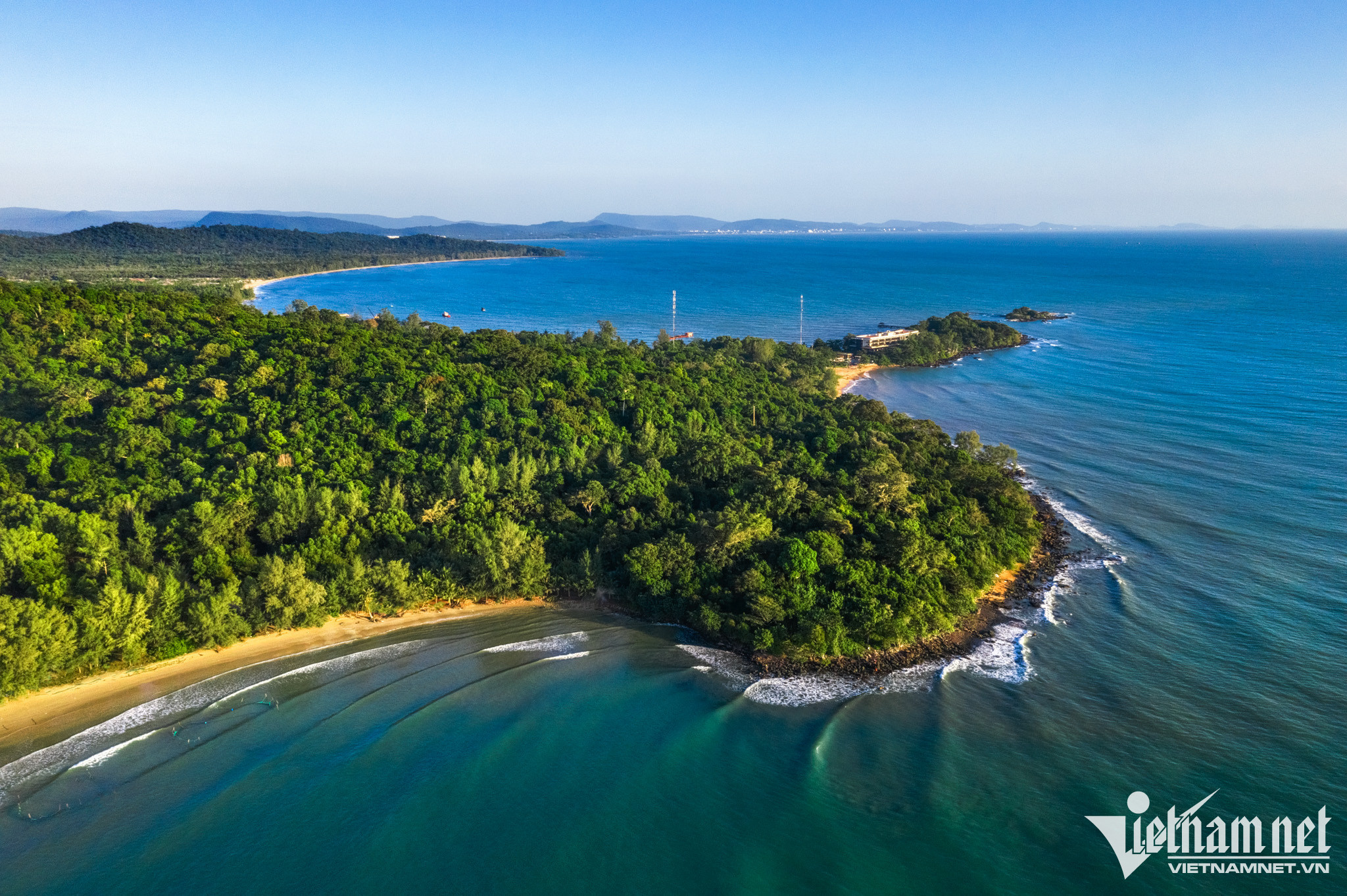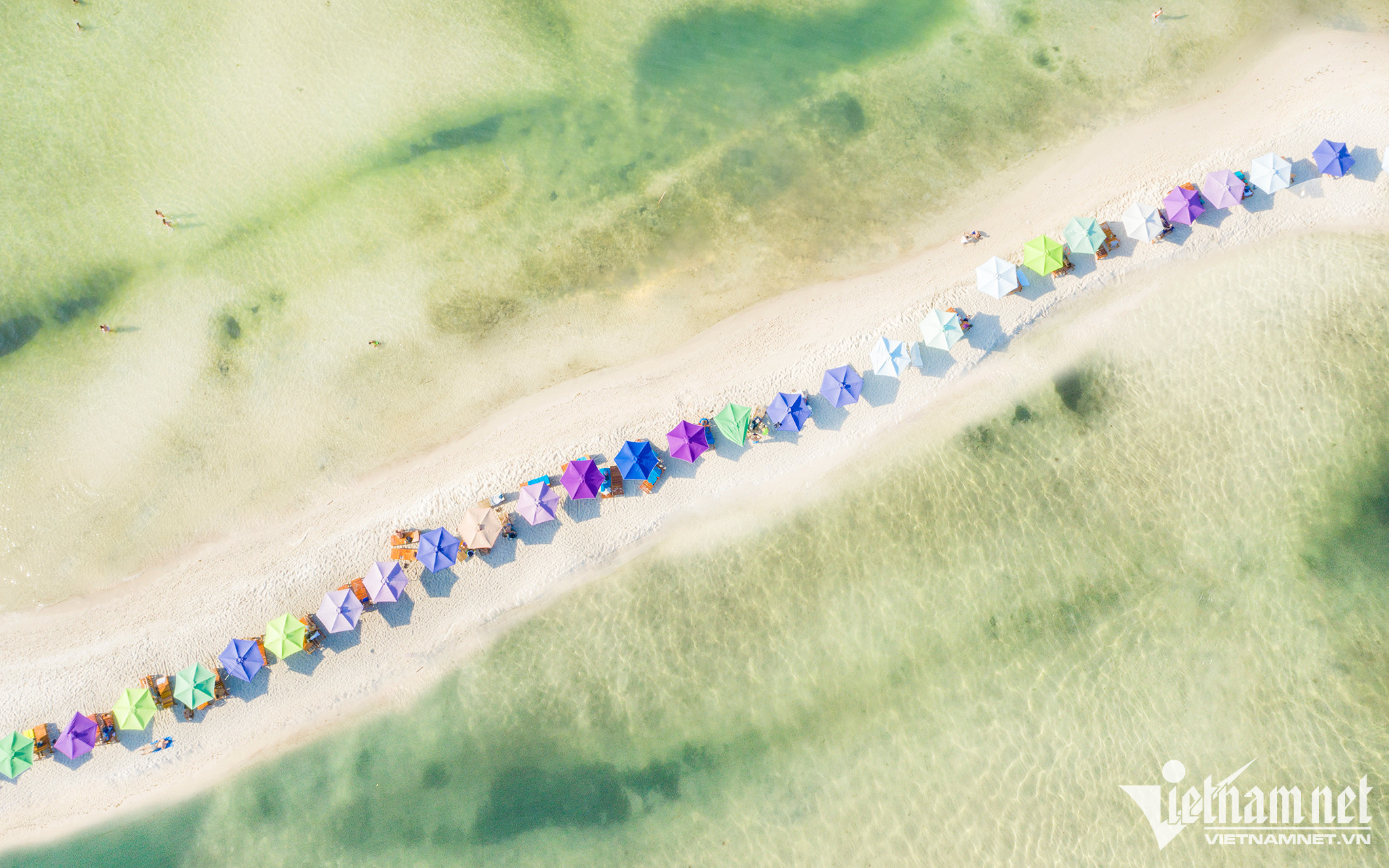 Coming to An Thoi, tourists often visit Hon Thom island, one of the most beautiful places in Phu Quoc, where there is a clear blue beach, stretching as far as the eye can see. The most ideal time to come here is the dry season, when the weather is completely dry, the average temperature is about 26-30 degrees Celsius, suitable for swimming, diving, fishing and exploring activities. Photo: Quang Ngoc.