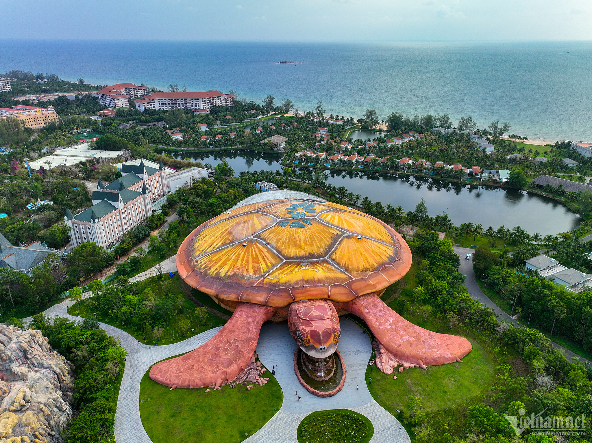 The aquarium is shaped like a giant turtle, located on the beach in Ganh Dau commune. This work has a total area of 15,000 square meters, including three floors.