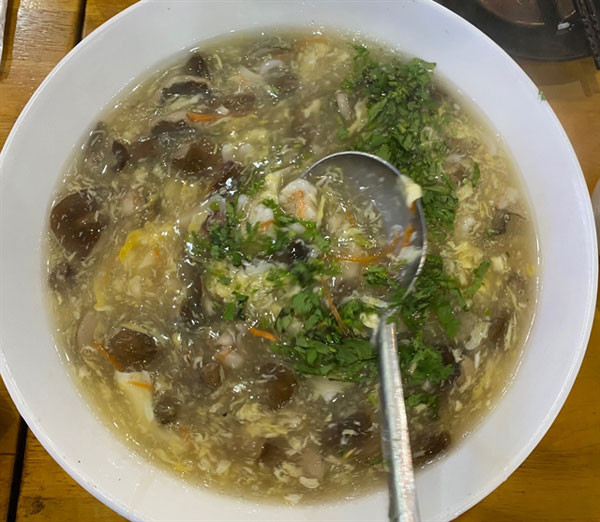 In his menu, soup from the mushroom with egg, pork or seafood, and mushroom porridge, are the highlights.