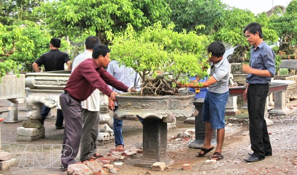 The price of bonsai trees varies but in general it is fairly high. The price of a pot of a small-sized ficus or benjamine fig, which is several years old, is from 700,000 VND to two million VND.