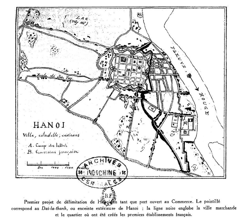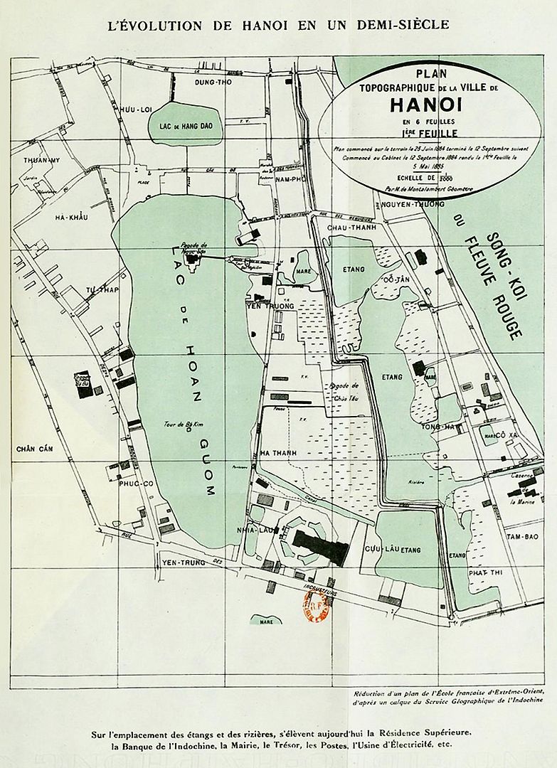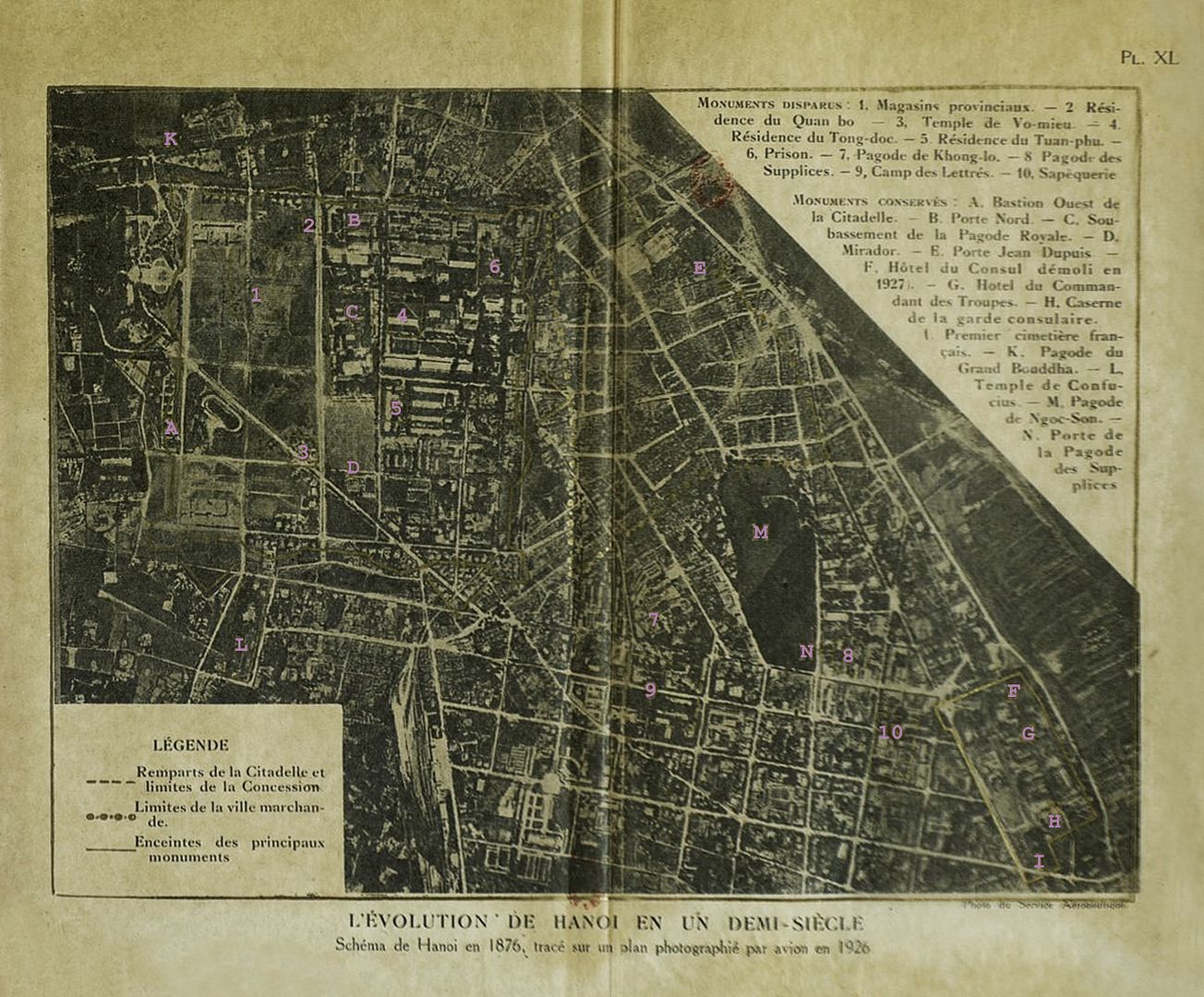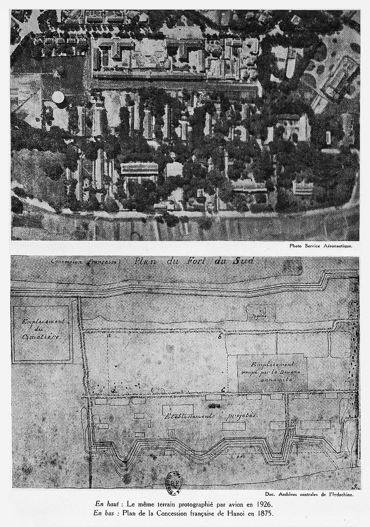 The French concession area in Hanoi in 1875 (below) and the photo in 1926 (above).