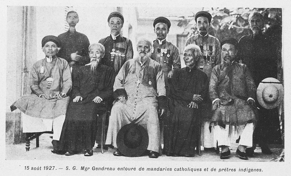 Hanoi Bishop Gendreau with Vietnamese officials and priests.
