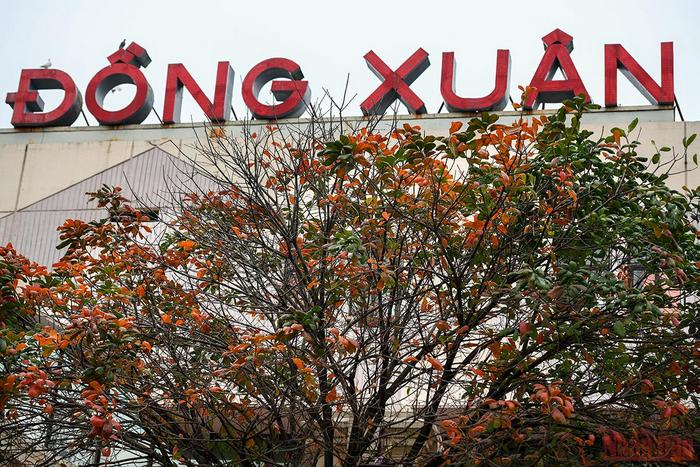 A corner of Dong Xuan Market is more beautiful thanks to the (Terminalia catappa) trees changing into a new set of bright red clothes.