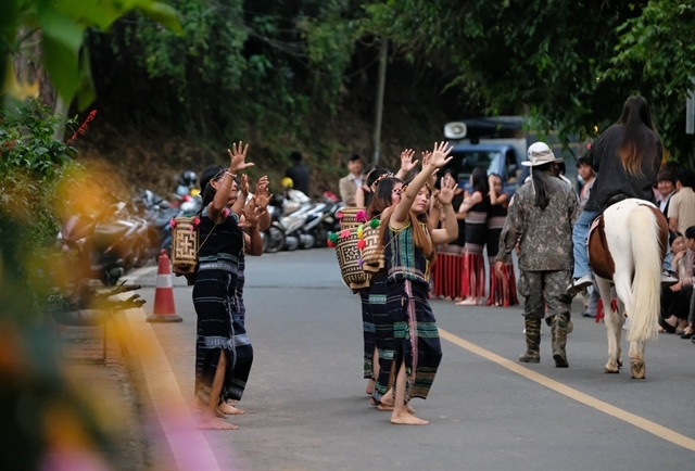 | A traditional dance and gong performance on July 11 to mark the opening of Đà Lạt Art Street Season 2. - VNA Photo |