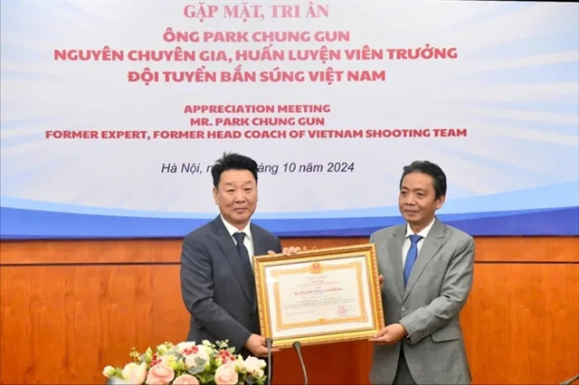 He was given the award at a special ceremony on October 8 in Hà Nội which saw the participation of sport officials, former and current shooters from the national team and many individuals from the marksman world who wanted to thank Park for his contributions.