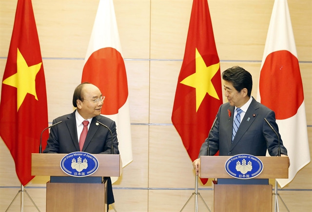 | The then-Prime Minister Nguyen Xuan Phuc and Japanese counterpart Abe Shinzo at a press briefing in Tokyo, Japan, following their official talks on October 8, 2018. |