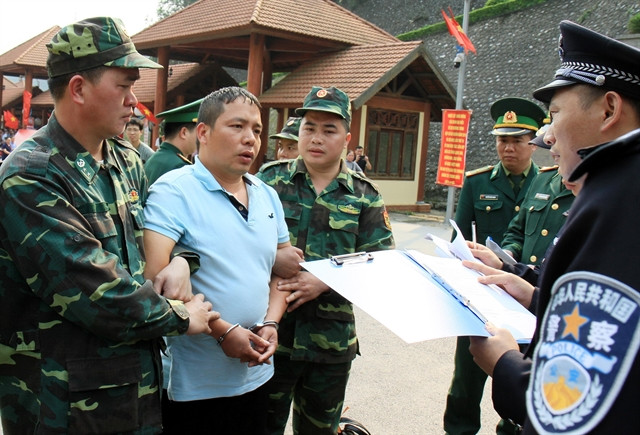 | A Chinese criminal is extradited from Việt Nam and handed over to Chinese police at Hữu Nghị border gate in northern Lạng Sơn Province. — VNA/VNS Photo Ngọc Tùng |