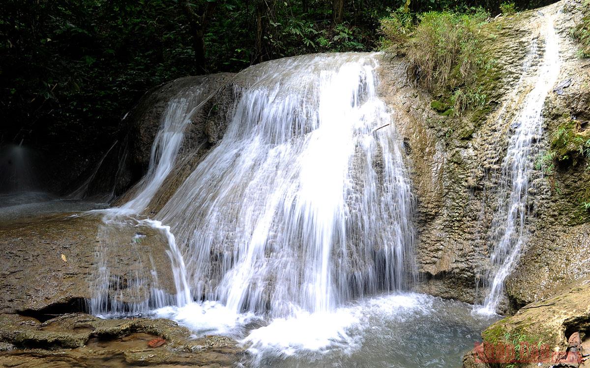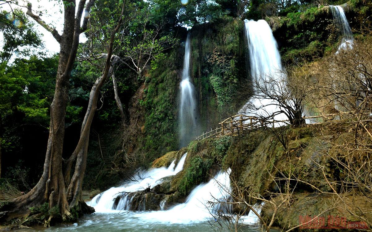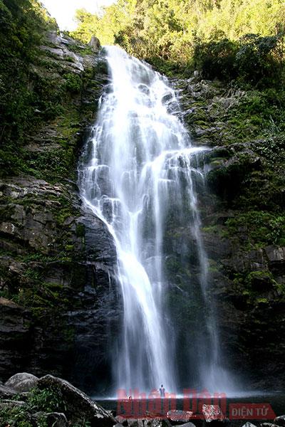 The waterfall has a height of about 100 m and was divided into two branches, including one side with nine layers and another with five layers.